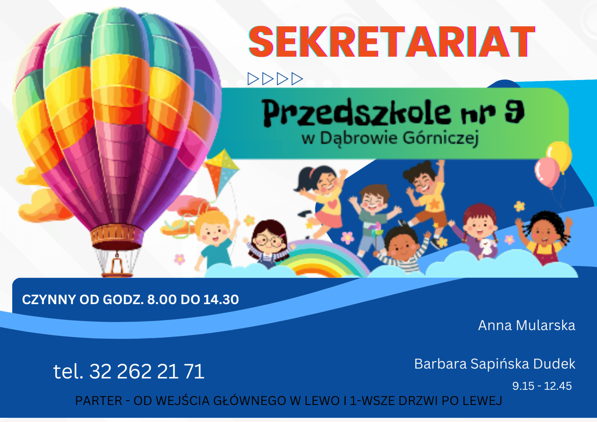 SEKRETARIAT PRZEDSZKOLA 8.00 - 14.30: